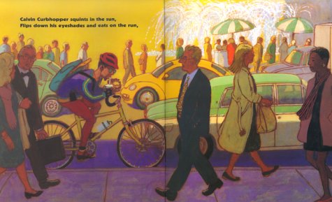 Young readers can follow Calvin Curbhopper, a bike messenger, as he spins through revolving doors, rushes through tunnels, and greets his messenger friends, in a fast-paced story filled with rhythmic text and energetic illustrations.