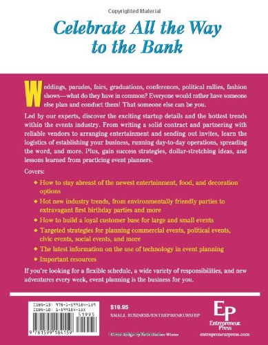 This up-to-date primer on one of today’s hottest businesses walks readers step by step through the process of developing an event planning business, featuring more resources, new trends, new online tools and new interviews with fresh advice from successful event planners. Covering hot new trends in the industry, including the rise in first birthday celebrations, environmentally friendly parties, small-plate catering and more, this startup guide provides entrepreneurs with everything they need to take their event business from concept to reality. Aspiring event planners gain expert advice on logistical startup issues such as finding a location, selecting attorneys and other professionals, writing a solid contract, locating reliable vendors, buying adequate insurance, hiring quality employees and more. Plus, they’ll learn success strategies for both full- and part-time event planners. New anecdotes from successful event planners, fresh dollar-stretching ideas, a brand new chapter on social media and more industry resources make this book a must-have for anyone entering this fast-paced, high-demand field.