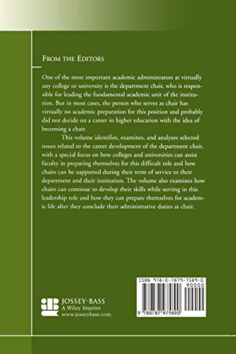 This monograph identifies, examines, and analyzes selected issues related to the career development of the department chair with a special focus on how colleges and universities can assist faculty in preparing themselves for this role, and how chairs can be supported during their term of service. Chapters examine how chairs can continue to develop their skills while serving in this leadership role, and how they can prepare themselves for academic life after they conclude their administrative duties as chair.